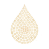 A mosaic made of small, beige, rectangular and semi-circular tiles arranged in concentric circles on a black background.